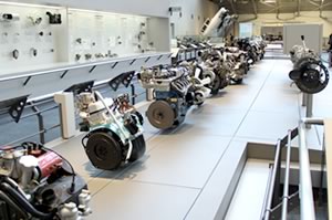 The important points in the exhibition are easy to show and see because automobile factories then and now, technological research-related exhibits, and the successive generations of the Toyota automobiles are displayed in one location.