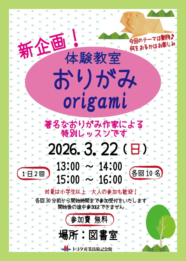 【図書室】体験教室 「おりがみ」3月22日(日) 開催のお知らせ