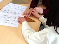顔の部分は細かく、一番の難所。わからないところは手を挙げて、先生に丁寧に教えてもらいます。