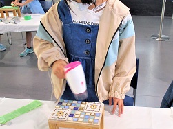 「色を斜めにそろえたらキレイかな?」「外側は大きなタイル、内側は小さなタイルを置いてみよう」