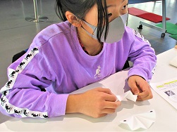 「ろ紙が開かないようにしっかり折り目をつけて・・・」「切り込みも少し入れてみよう!」