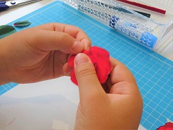 葉の周りは、本物のバラの葉に見えるようギザギザにカット!続いて、パーツ断面の白い部分に色鉛筆で丁寧に色を塗ります。