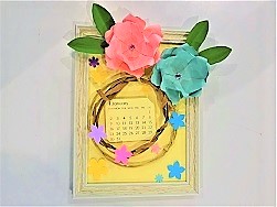 今回は、紙で立体的なお花を作り来年用のカレンダーフレームを華やかにデコレーションします。