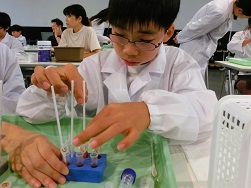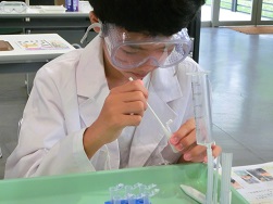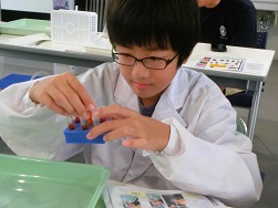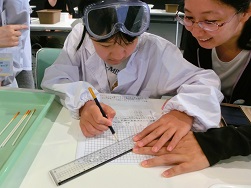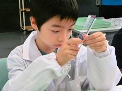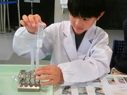 初めて扱う実験器具や試薬に、子どもたちの表情は真剣そのもの。