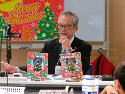 子どもたちは色画用紙を自由に切り張りしたり、サンタクロースやトナカイなどのイラストを自由にデコレーションをして、
