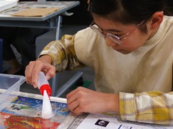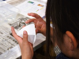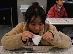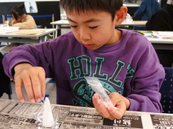 子どもたちは結晶が大きく成長するよう、なるべくろ紙の表面積を大きくする工夫を凝らして、丁寧に取り組んでいました。