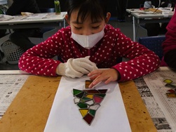 好きな大きさ・色・形のガラスを選び、図案の上に置きます。