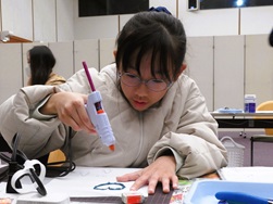 はじめに、LEDの特性について学び、手順や注意点を聞いた後デザインを決めます。