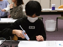 デザインが決まったら、グルーガンを使って立体的な形にしていきます。