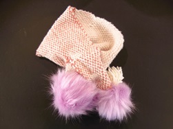 最後に、たて糸の処理をして好きな色の“ポンポン”を選んだら、マフラーの両端に付けて完成です!