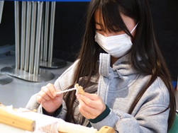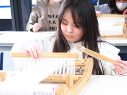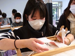 少し難易度の高い織り方に、子ども達は何度も説明を聞きながら真剣な表情で取り組んでいました。
