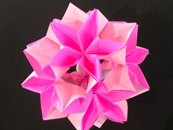端を上手にはめ込みながら5枚の花びらを作り、さらにその周りをつなげて球体にしていきます。