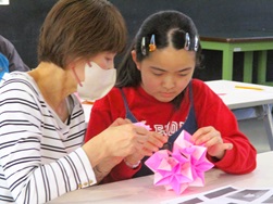 子どもたちは細かな作業に時間がかかっていましたが、次第に慣れて夢中で折っていました。