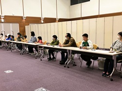 はじめに、ドローンが飛ぶ仕組みや注意事項を聞いてからコントローラーの操作を練習し、順番に操縦開始!